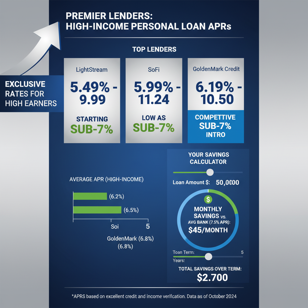 Interest rates are hovering stubbornly high into 2026, with the average APR for a 24-month personal loan sitting at 11.14% according to Federal Reserve data[2]. But here’s the game-changer: if you’re pulling in six figures or more, you’re not stuck with mediocre offers. Lenders like LightStream are dangling starting APRs as low as **6.49%** exclusively for top-tier borrowers with excellent credit[1]. High earners who know the playbook are locking in these rates before they vanish—FOMO is real as rate cuts get delayed again and again.